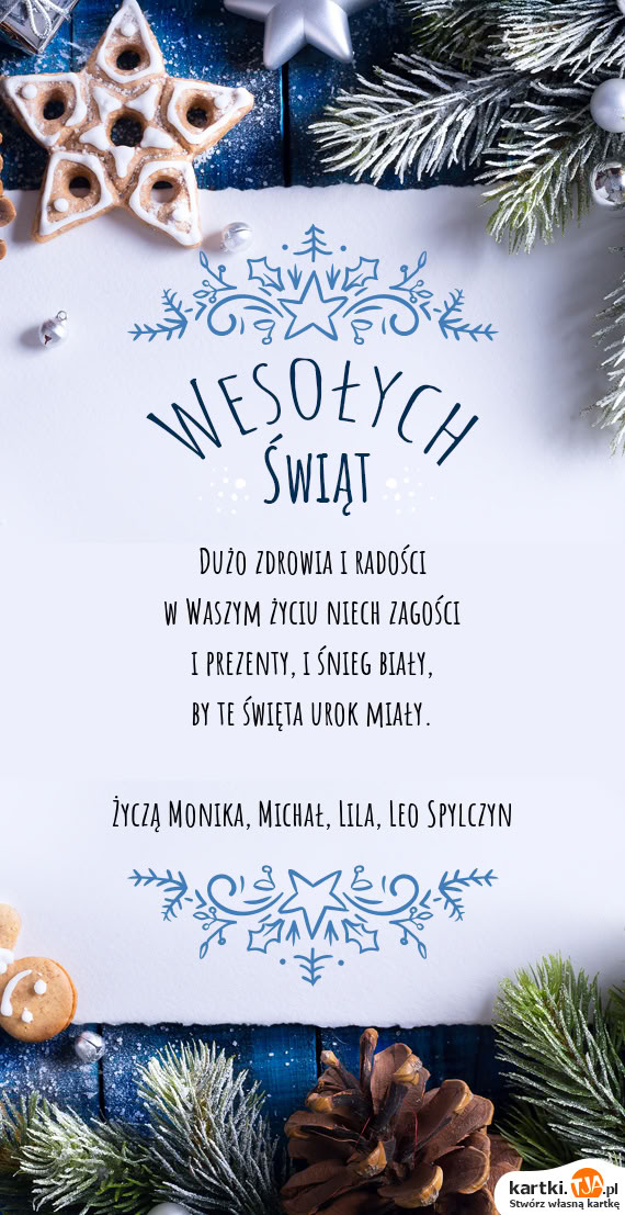 Życzą Monika, Michał, Lila, Leo Spylczyn