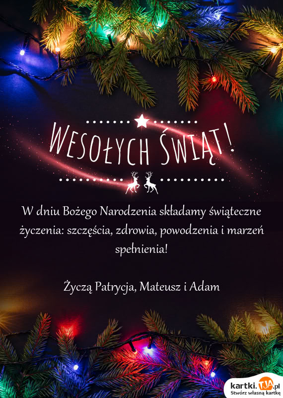 W dniu Bożego Narodzenia składamy świąteczne życzenia: szczęścia, zdrowia, powodzenia i marzeń spełnienia!