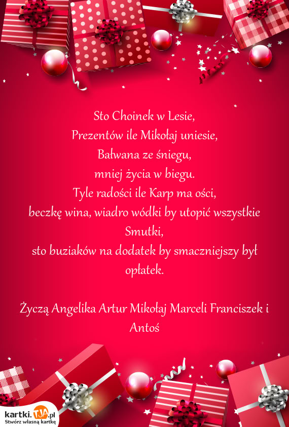 Życzą Angelika Artur Mikołaj Marceli Franciszek i Antoś