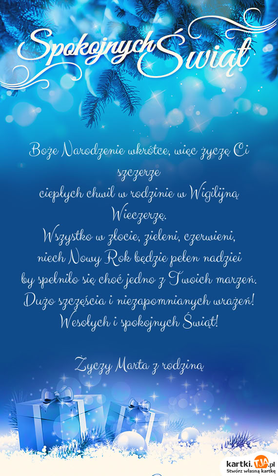 Boże Narodzenie wkrótce, więc życzę Ci szczerze