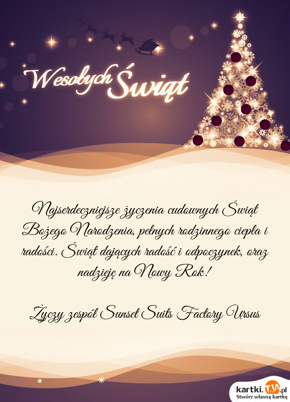 Najserdeczniejsze życzenia cudownych Świąt Bożego Narodzenia, pełnych rodzinnego ciepła i radości. Świąt dających radość i odpoczynek, oraz nadzieję na Nowy Rok!
