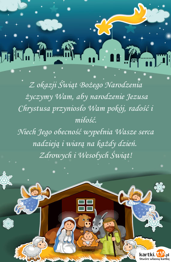 życzymy Wam, aby narodzenie Jezusa Chrystusa przyniosło Wam pokój, radość i miłość.