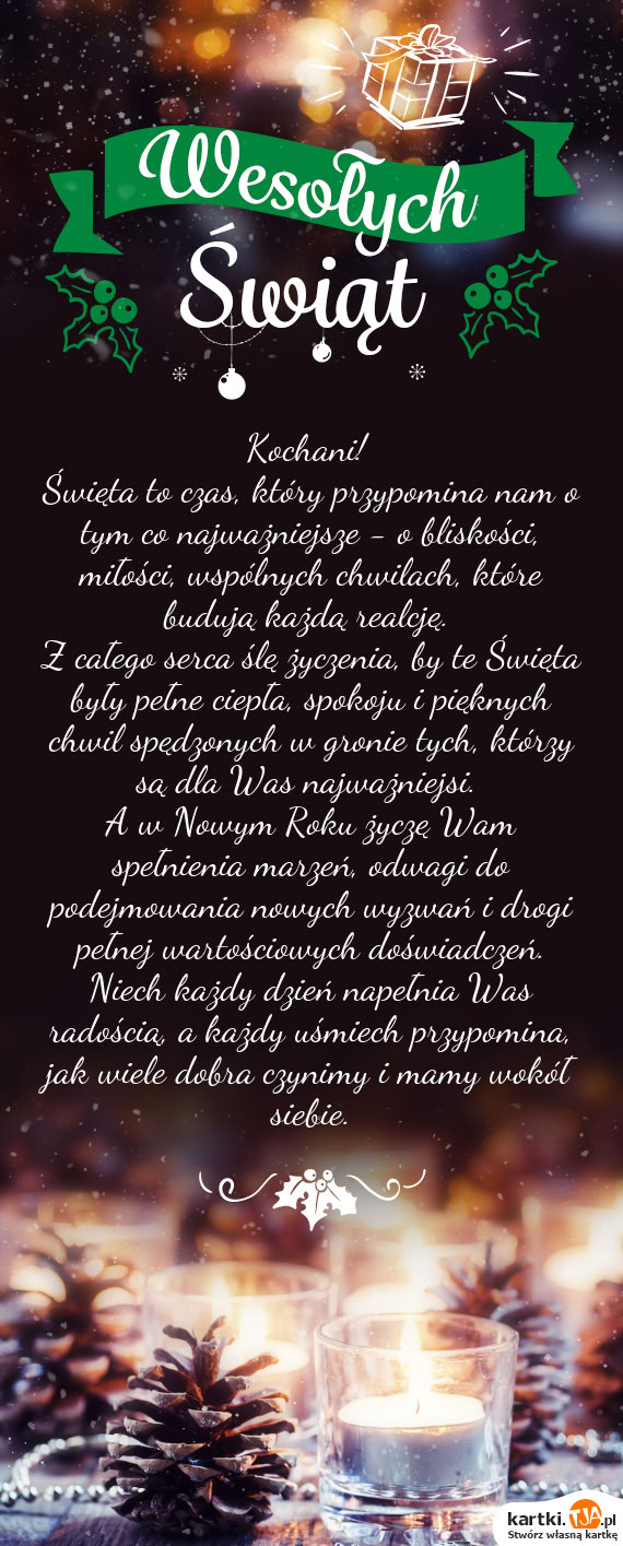 Z całego serca ślę życzenia, by te Święta były pełne ciepła, spokoju i pięknych chwil spędzonych w gronie tych, którzy są dla Was najważniejsi.