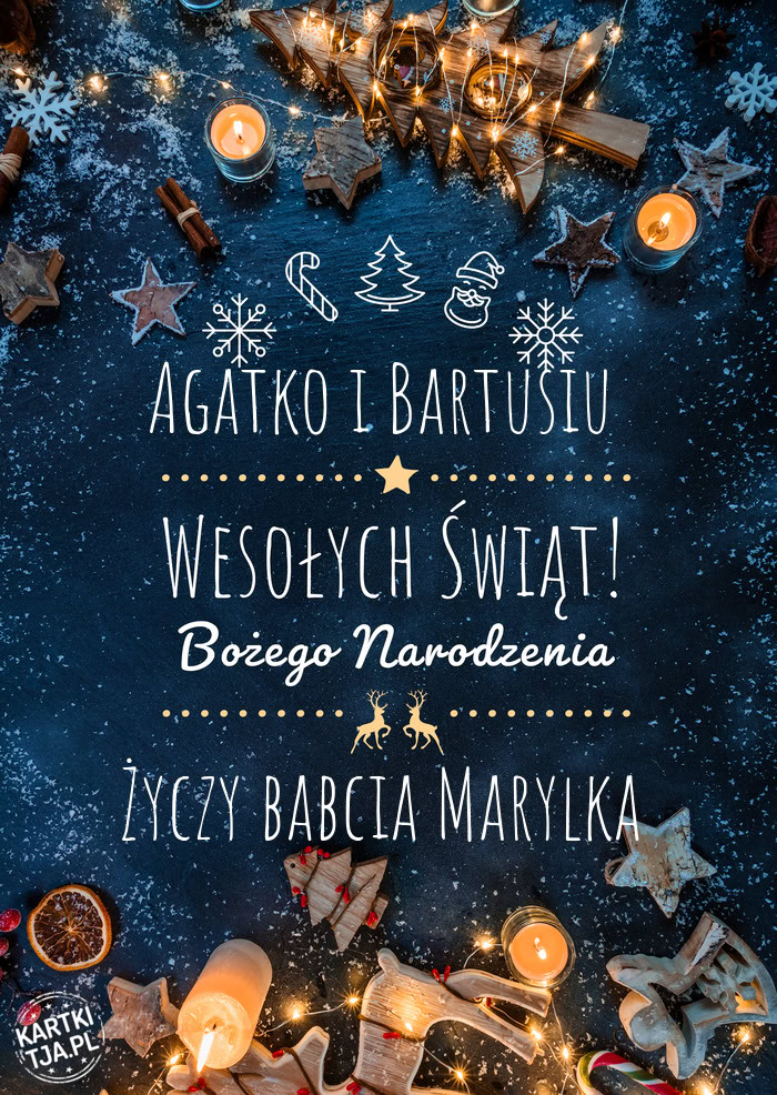Agatko i Bartusiu Wesołych Świąt babcia Marylka