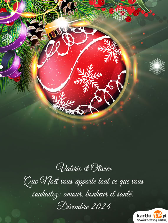 Que Noël vous apporte tout ce que vous souhaitez: amour, bonheur et santé.