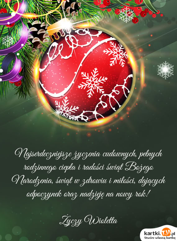 Najserdeczniejsze życzenia cudownych, pełnych rodzinnego ciepła i radości świąt Bożego Narodzenia, świąt w zdrowiu i miłości, dających odpoczynek oraz nadzieję na nowy rok!