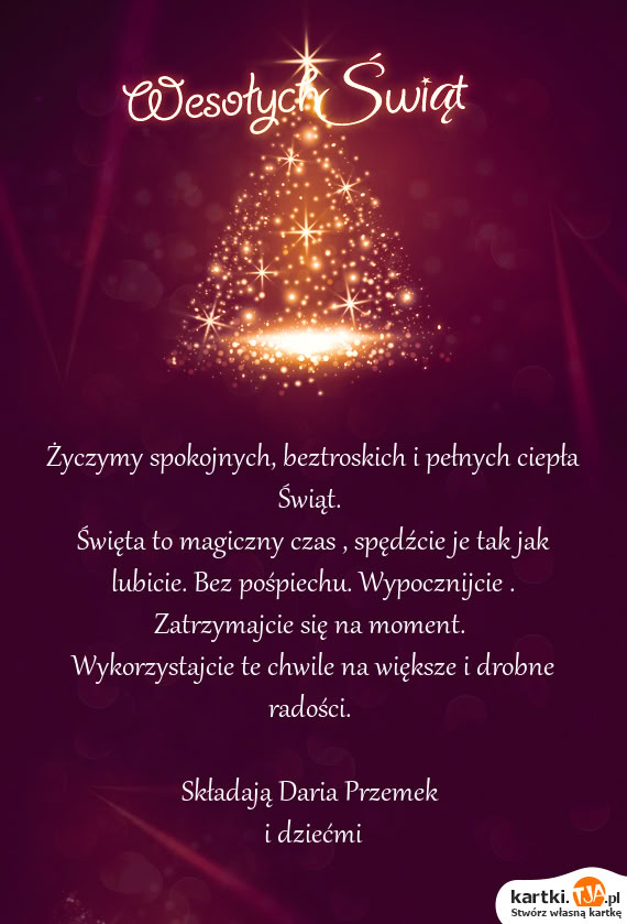 Święta to magiczny czas , spędźcie je tak jak lubicie. Bez pośpiechu. Wypocznijcie .