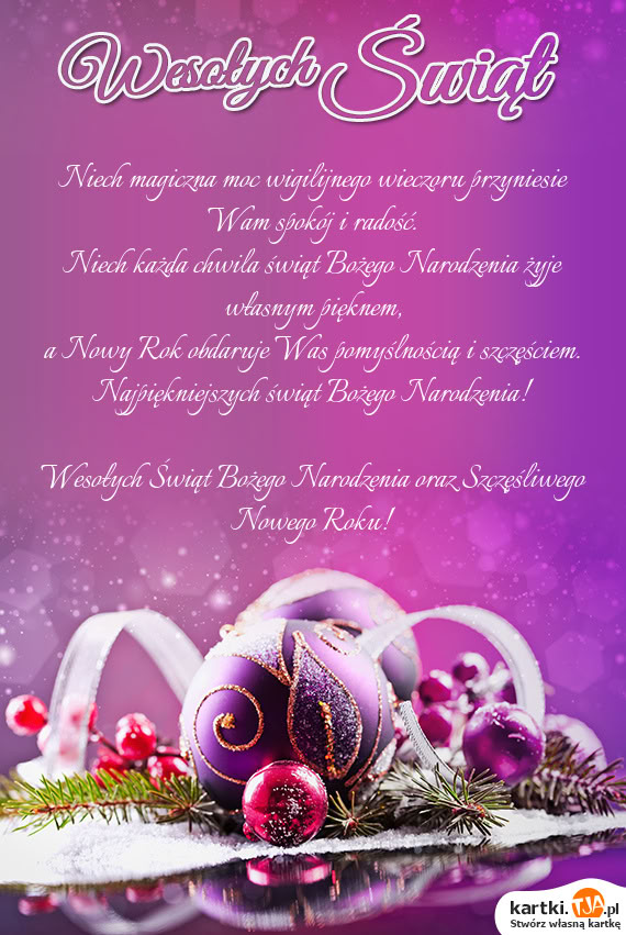 Niech magiczna moc wigilijnego wieczoru przyniesie Wam spokój i radość.