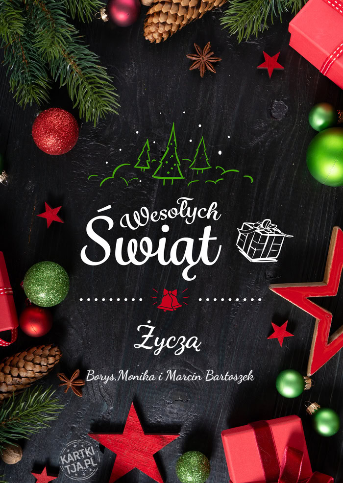 Wesołych Świąt Życzą Borys,Monika i Marcin Bartoszek