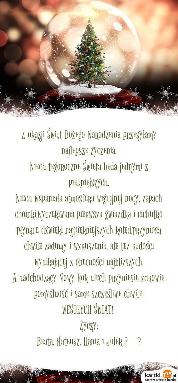 Z okazji Świąt Bożego Narodzenia przesyłamy najlepsze życzenia.