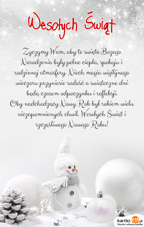 Oby nadchodzący Nowy Rok był rokiem wielu niczapomnianych chwil. Wesołych Świąt i szczęśliwego Nowego Roku!