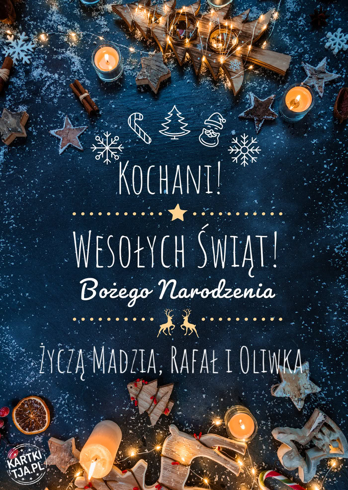 Kochani! Wesołych Świąt Życzą Madzia, Rafał i Oliwka