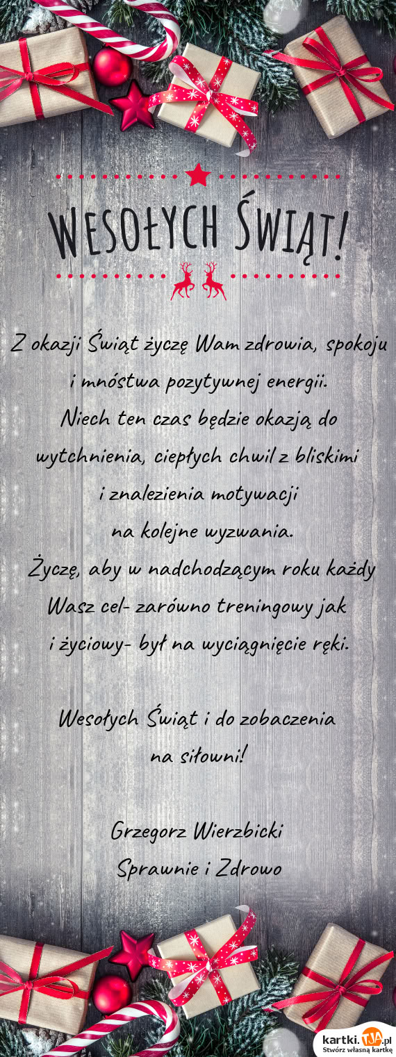 Z okazji Świąt życzę Wam zdrowia, spokoju i mnóstwa pozytywnej energii.