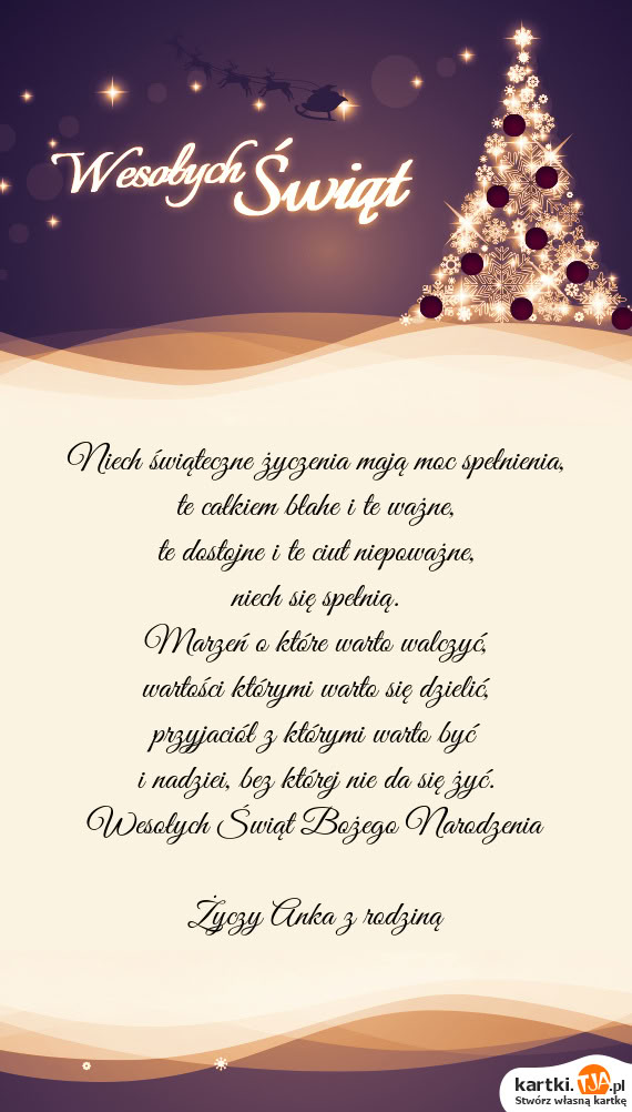Niech świąteczne życzenia mają moc spełnienia,