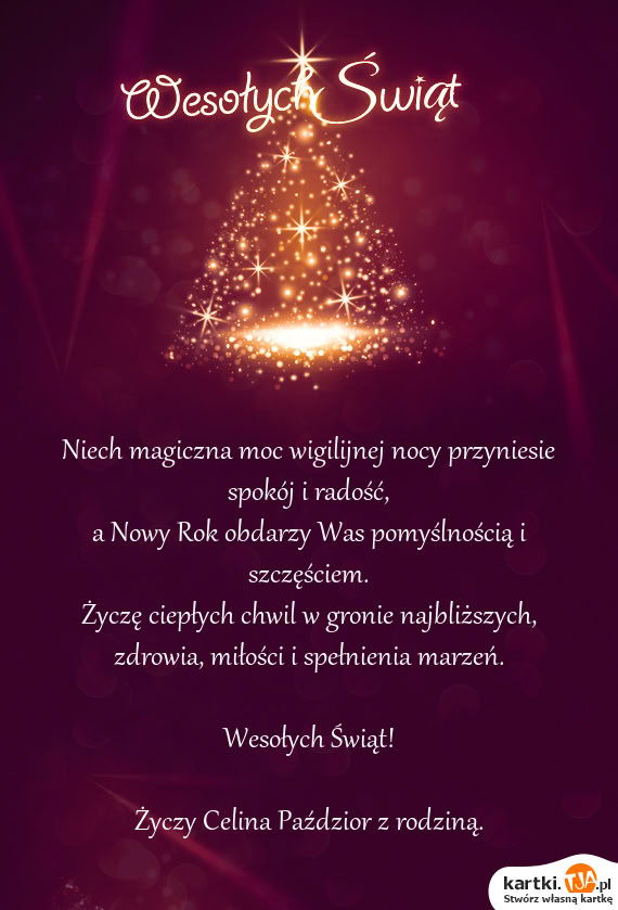 Niech magiczna moc wigilijnej nocy przyniesie spokój i radość,