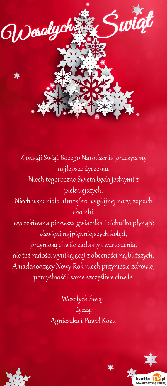 Z okazji Świąt Bożego Narodzenia przesyłamy najlepsze życzenia.