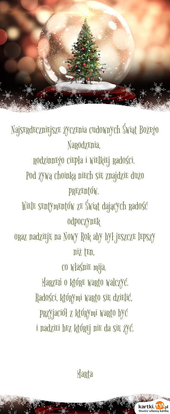 Najserdeczniejsze życzenia cudownych Świąt Bożego Narodzenia,