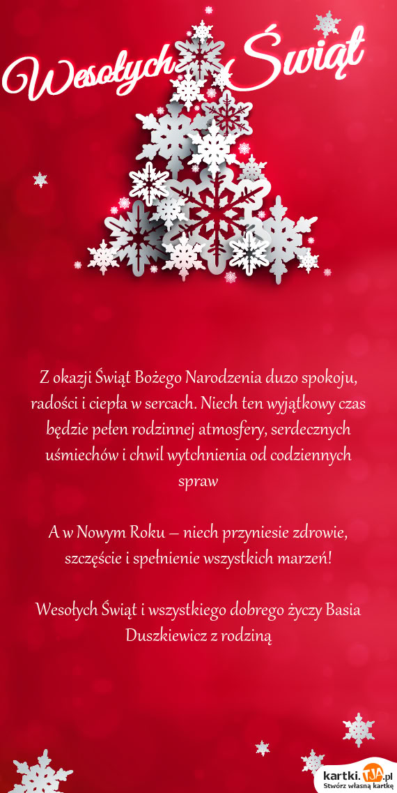 Wesołych Świąt i wszystkiego dobrego życzy Basia Duszkiewicz z rodziną