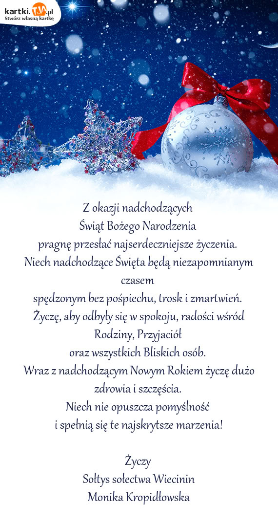 Wraz z nadchodzącym Nowym Rokiem życzę dużo zdrowia i szczęścia.