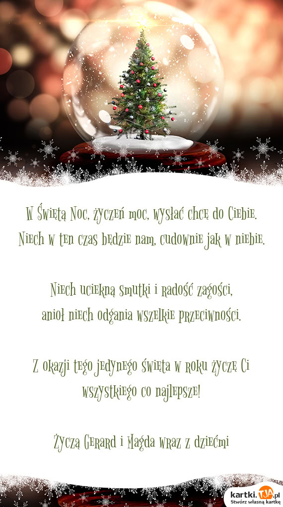W Świętą Noc, życzeń moc, wysłać chcę do Ciebie.