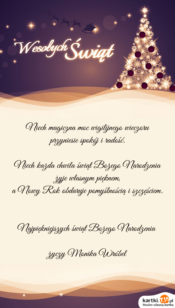 Niech magiczna moc wigilijnego wieczoru przyniesie spokój i radość.