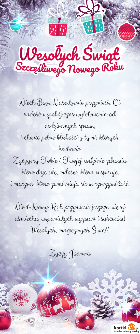 Życzymy Tobie i Twojej rodzinie zdrowia, które daje siłę, miłości, która inspiruje,