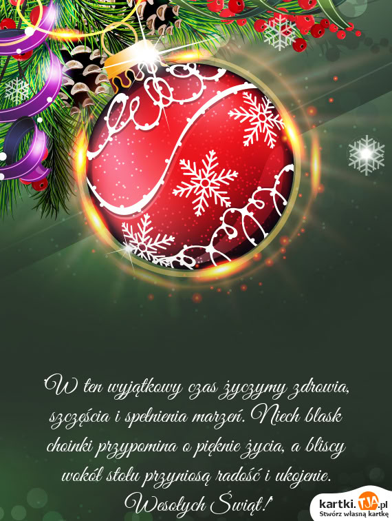"W ten wyjątkowy czas życzymy zdrowia, szczęścia i spełnienia marzeń. Niech blask choinki przypomina o pięknie życia, a bliscy wokół stołu przyniosą radość i ukojenie.