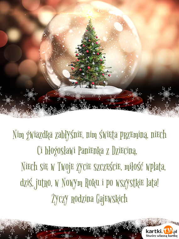 Nim gwiazdka zabłyśnie, nim święta przeminą, niech Ci błogosławi Panienka z Dzieciną,