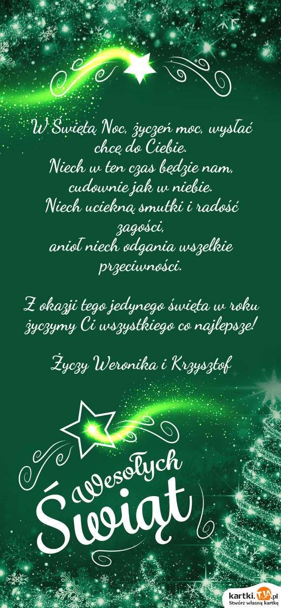 W Świętą Noc, życzeń moc, wysłać chcę do Ciebie.
