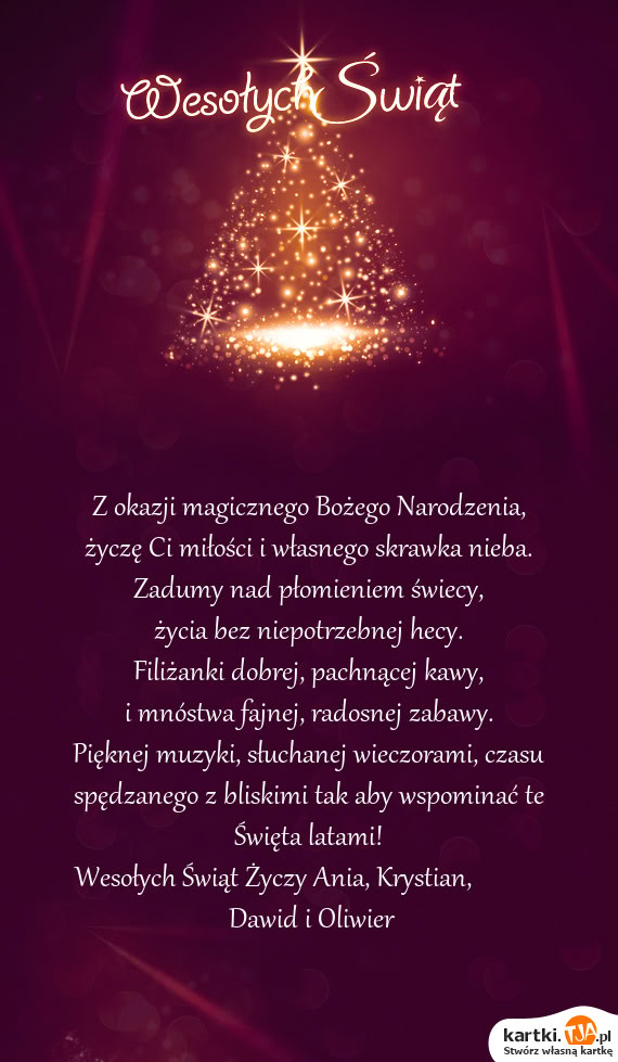 Pięknej muzyki, słuchanej wieczorami, czasu spędzanego z bliskimi tak aby wspominać te Święta latami!
