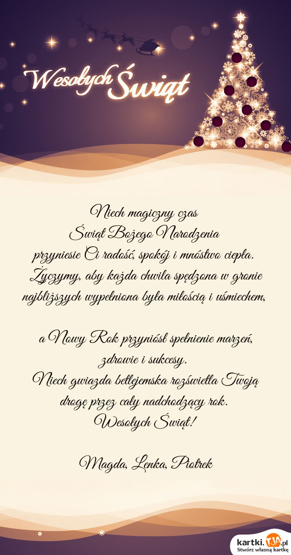 a Nowy Rok przyniósł spełnienie marzeń, zdrowie i sukcesy.