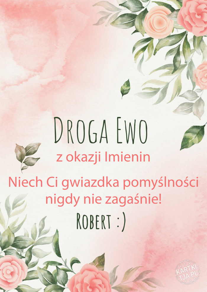 Droga Ewo Z okazji imienin, wszystkiego najlepszego życzy Robert :)