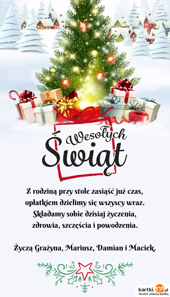 Życzą Grażyna, Mariusz, Damian i Maciek.