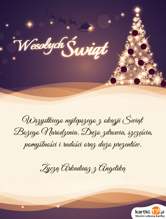Wszystkiego najlepszego z okazji Świąt Bożego Narodzenia. Dużo zdrowia, szczęścia, pomyślności i radości oraz dużo prezentów.