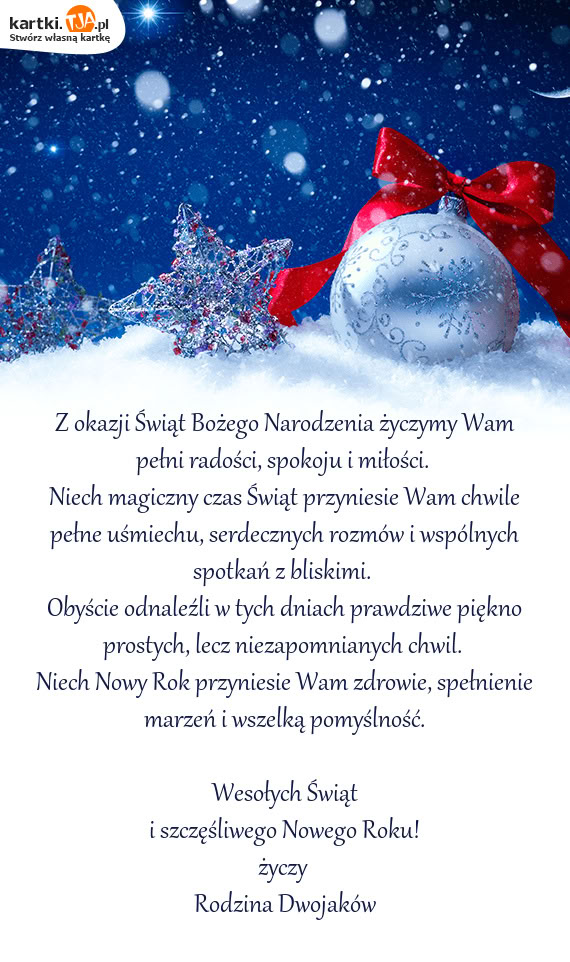 Z okazji Świąt Bożego Narodzenia życzymy Wam pełni radości, spokoju i miłości.