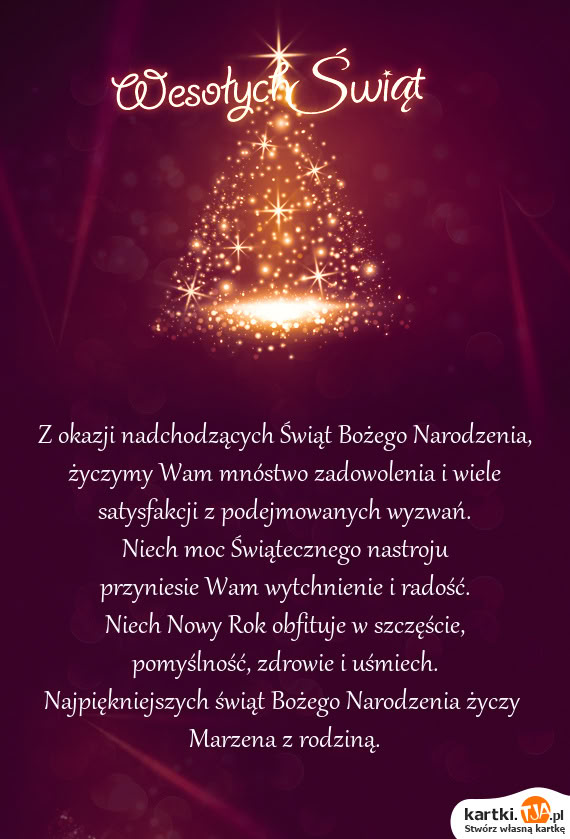 Z okazji nadchodzących Świąt Bożego Narodzenia, życzymy Wam mnóstwo zadowolenia i wiele satysfakcji z podejmowanych wyzwań.