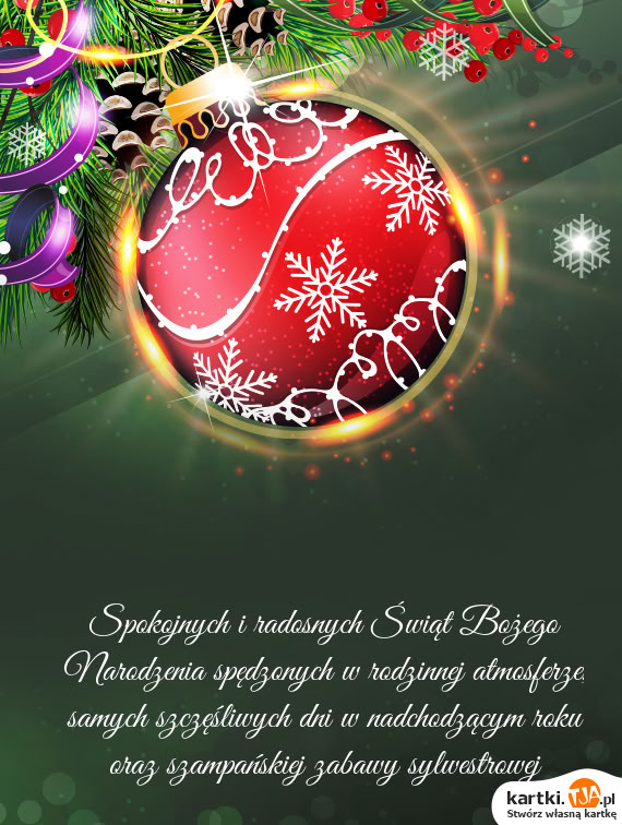 Spokojnych i radosnych Świąt Bożego Narodzenia spędzonych w rodzinnej atmosferze, samych szczęśliwych dni w nadchodzącym roku oraz szampańskiej zabawy sylwestrowej