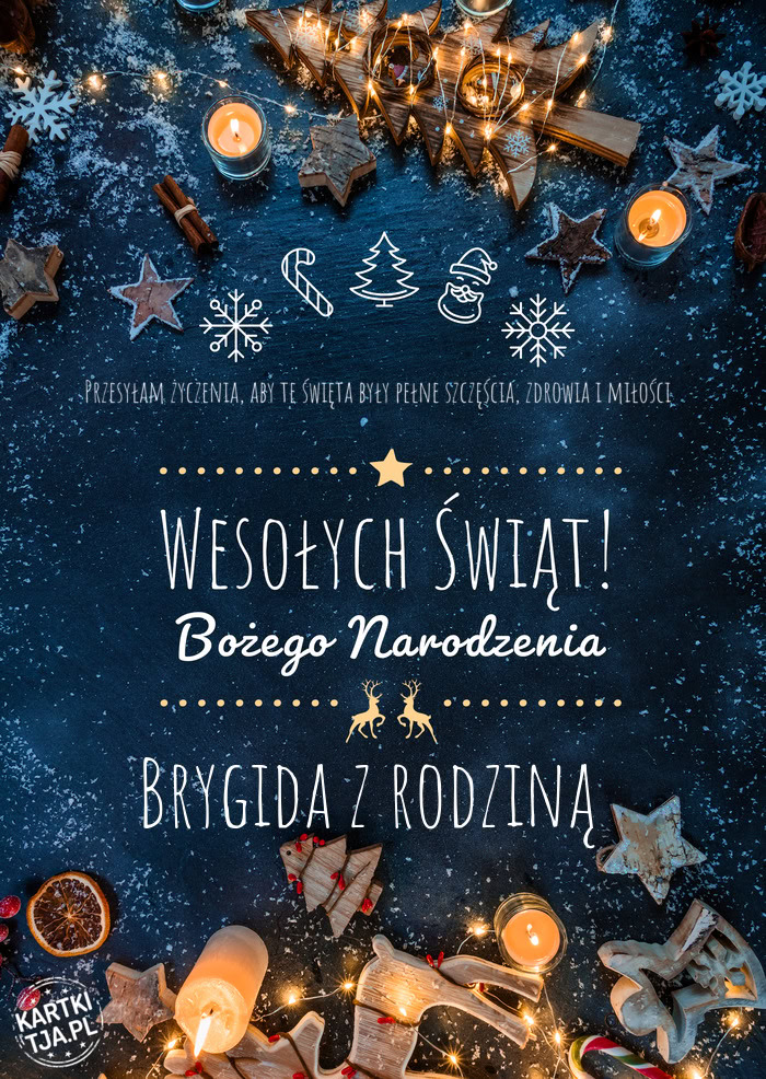 Przesyłam życzenia, aby te święta były pełne szczęścia, zdrowia i miłości Wesołych Świąt Brygida z rodziną
