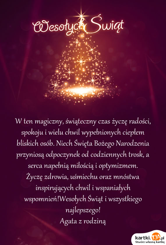 Życzę zdrowia, uśmiechu oraz mnóstwa inspirujących chwil i wspaniałych wspomnień!Wesołych Świąt i wszystkiego najlepszego!
