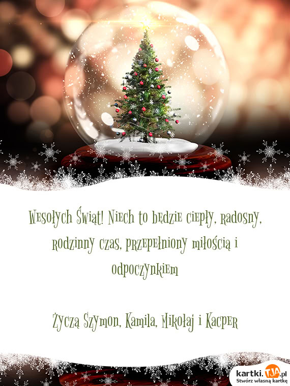 Wesołych Świąt! Niech to będzie ciepły, radosny, rodzinny czas, przepełniony miłością i odpoczynkiem