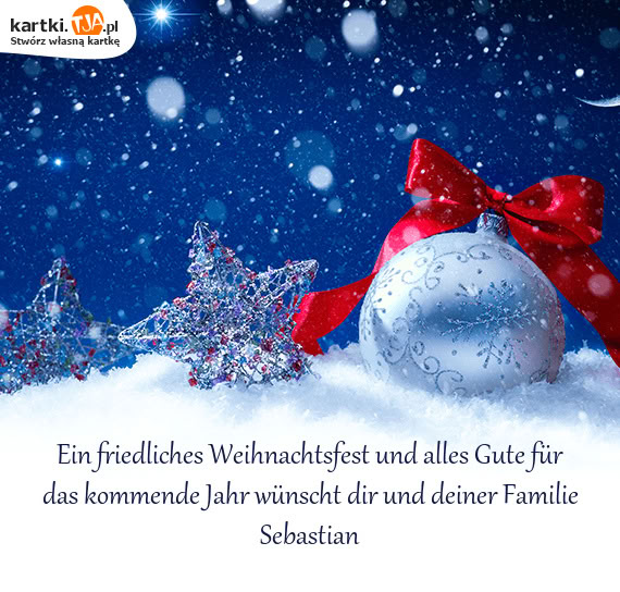 Ein friedliches Weihnachtsfest und alles Gute für das kommende Jahr wünscht dir und deiner Familie Sebastian