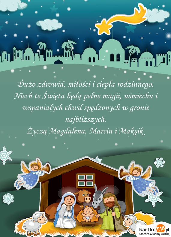 Dużo zdrowia, miłości i ciepła rodzinnego. Niech te Święta będą pełne magii, uśmiechu i wspaniałych chwil spędzonych w gronie najbliższych.