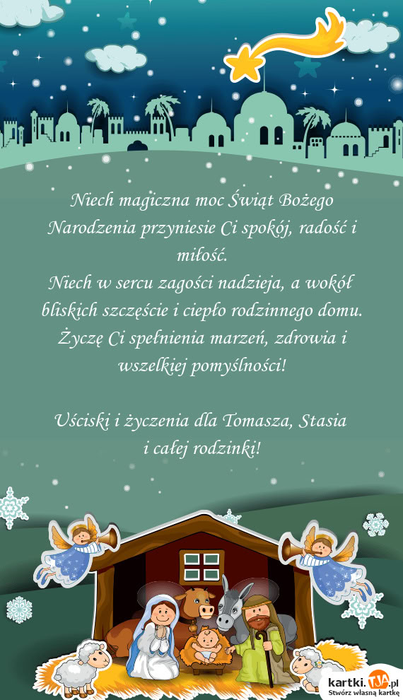 Niech magiczna moc Świąt Bożego Narodzenia przyniesie Ci spokój, radość i miłość.
