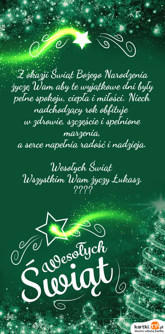 Z okazji Świąt Bożego Narodzenia życzę Wam aby te wyjątkowe dni były pełne spokoju, ciepła i miłości. Niech nadchodzący rok obfituje