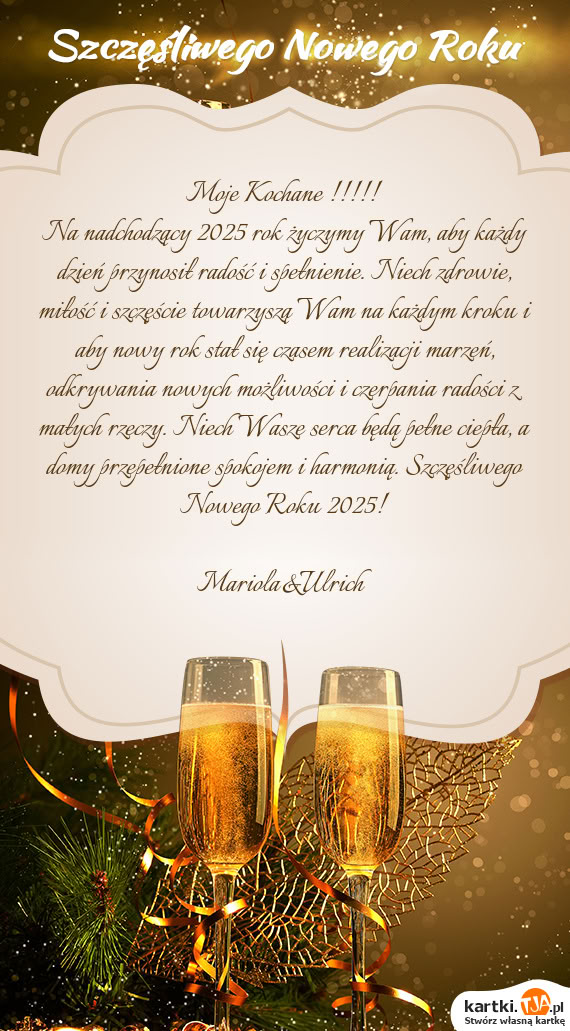Na nadchodzący 2025 rok życzymy Wam, aby każdy dzień przynosił radość i spełnienie. Niech zdrowie, miłość i szczęście towarzyszą Wam na każdym kroku i aby nowy rok stał się czasem realizacji marzeń, odkrywania nowych możliwości i czerpania radości z małych rzeczy. Niech Wasze serca będą pełne ciepła, a domy przepełnione spokojem i harmonią. Szczęśliwego Nowego Roku 2025!