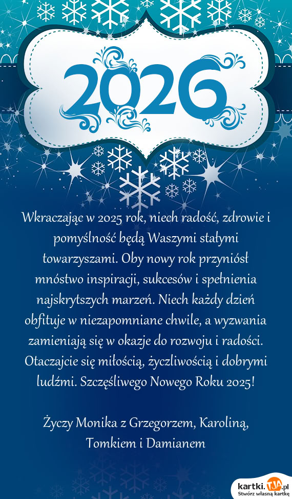 Życzy Monika z Grzegorzem, Karoliną, Tomkiem i Damianem
