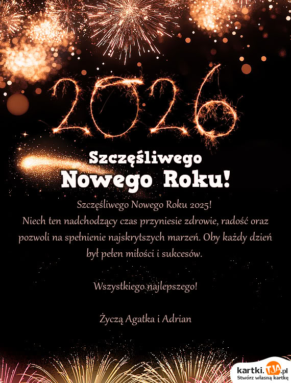 Niech ten nadchodzący czas przyniesie zdrowie, radość oraz pozwoli na spełnienie najskrytszych marzeń. Oby każdy dzień był pełen miłości i sukcesów.