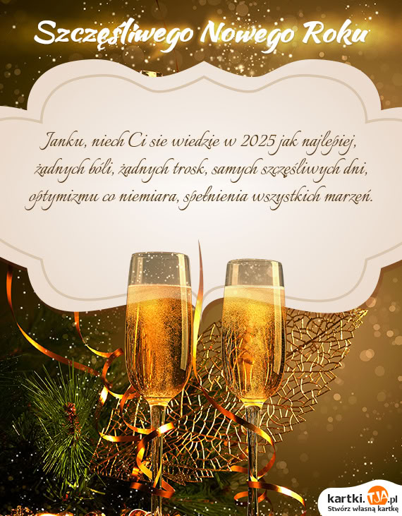 Janku, niech Ci sie wiedzie w 2025 jak najlepiej, żadnych bóli, żadnych trosk, samych szczęśliwych dni, optymizmu co niemiara, spełnienia wszystkich marzeń.