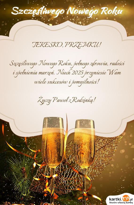 Szczęśliwego Nowego Roku, pełnego zdrowia, radości i spełnienia marzeń. Niech 2025 przyniesie Wam wiele sukcesów i pomyślności!