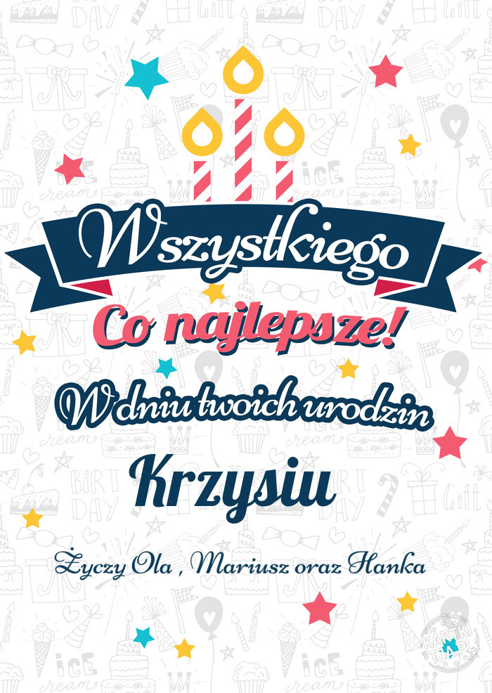 Wszystkiego najlepszego Krzysiu z okazji urodzin Ola , Mariusz oraz Hanka